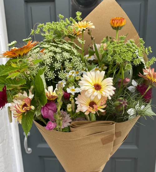 I grow by organic principles, all my flowers are wrapped in compostable packaging and delivered by electric bike