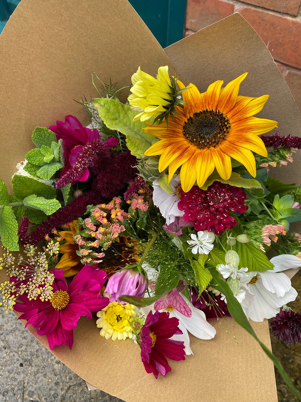 You’ll receive a beautiful bunch of flowers that are in season that week, delivered by electric bike.